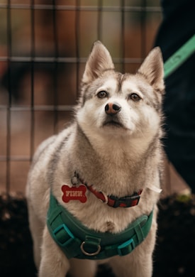 Happy dogs proudly wearing their custom Quality Dog Tags.